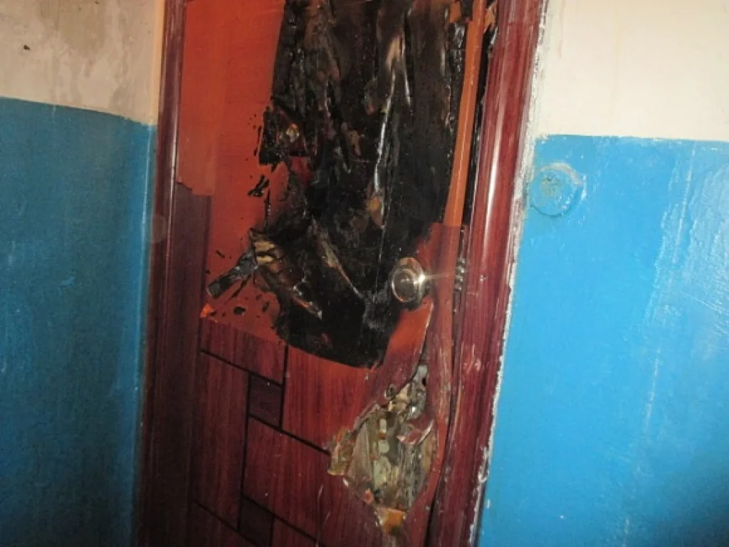 В результате пожара обгорела входная дверь. Никто не пострадал.