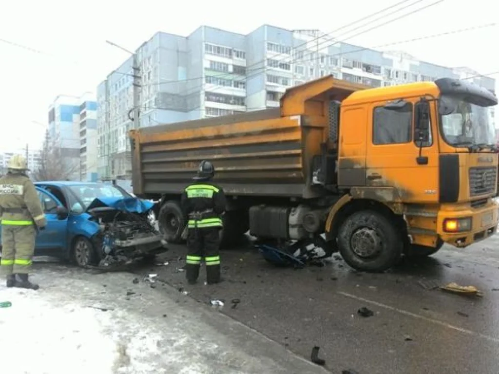 В субботу, 13 февраля, в Туле легковушка попала под «КамАЗ».