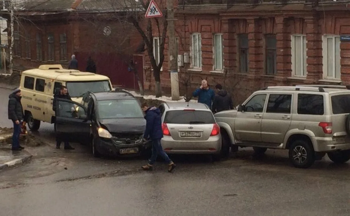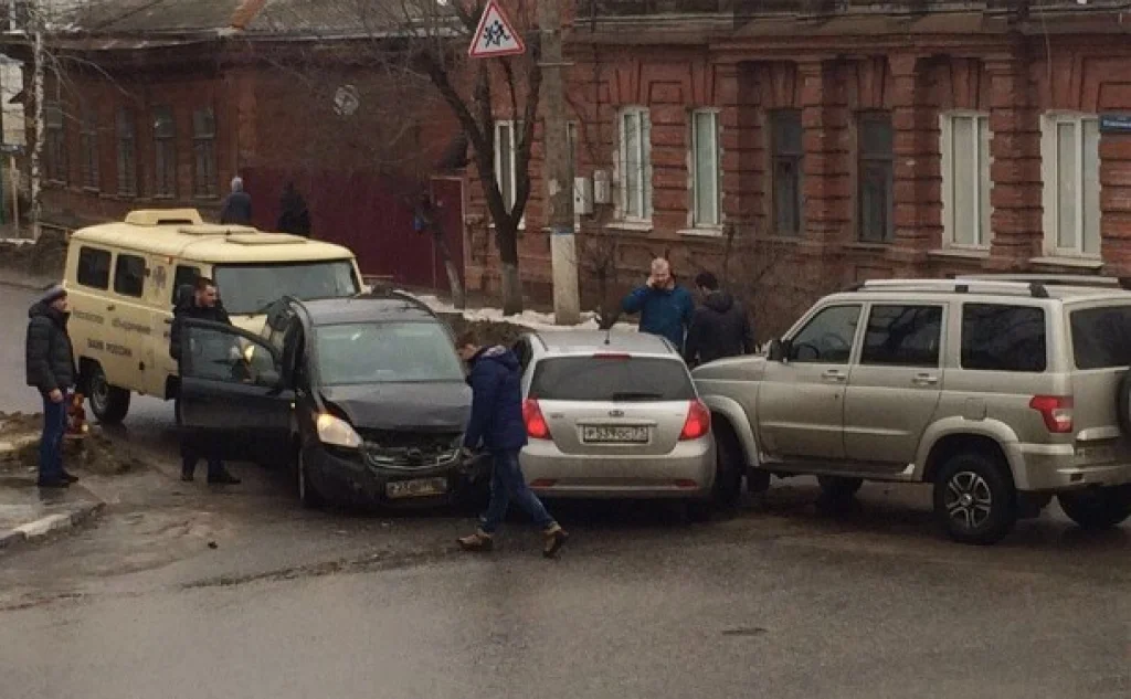 По предварительным данным, движущийся по улице Пушкинской «Kia Ceed» не пропустил УАЗ Патриот, ехавший по Тургеневской. Столкнувшиеся автомобили перегородили движение в обоих направлениях. Не успев затормозить, к аварии присоединился «Opel Zafira», зацепив припаркованный автомобиль инкассаторов. В результате аварии никто не пострадал.