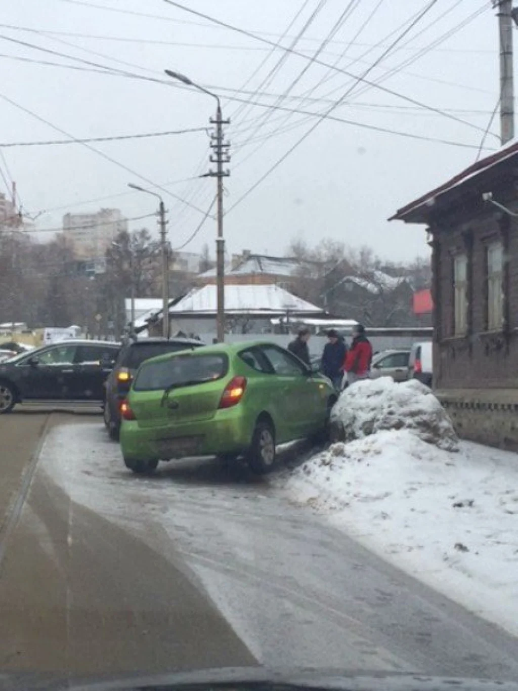 Утром 29 февраля недалеко от магазина Пятерочка столкнулись два автомобиля, Hyundai и Mitsubishi.