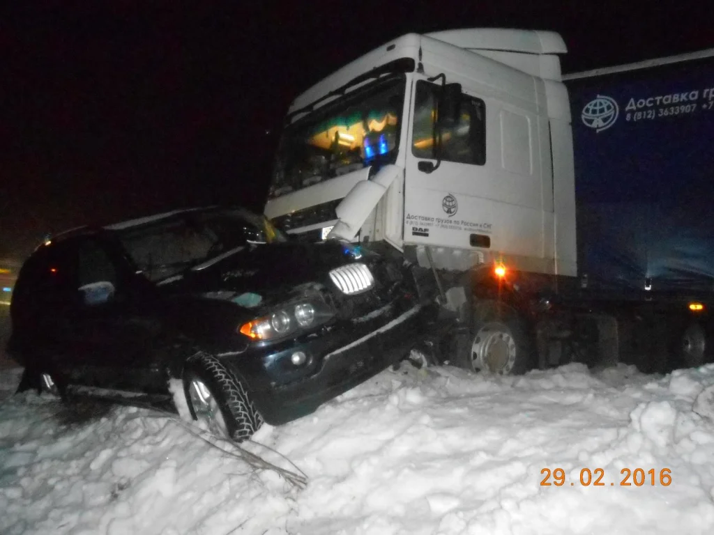 29 февраля 19:30 на 4 километре автодороги «Липки - Бородинский - Б.Калмыки» грузовик «DAF» протаранил «BMW Х5».