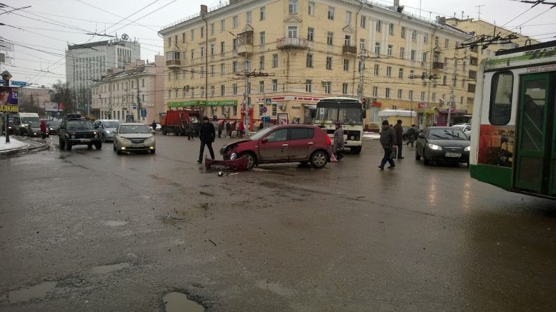 Днем 25 марта, на пересечении улицы Дмитрия Ульянова и Красноармейского проспекта произошло ДТП: дорогу не поделили «Рено Сандеро» и «Фольксваген Пассат».