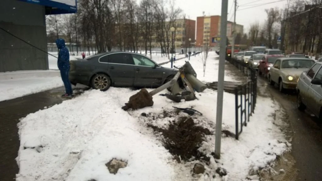 В центре Тулы иномарка с корнем вырвала светофор