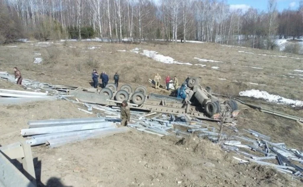 По предварительной информации, у грузовика пробило переднее колесо, из-за чего водитель не справился с управлением и слетел в кювет.