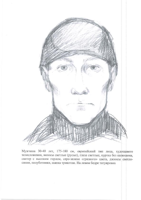 Его приметы: славянской внешности, на вид 30-40 лет, худощавого телосложения, рост около 175-180 см, волосы светло-русые, глаза светлые, в верхней части левого бедра татуировка синего цвета.