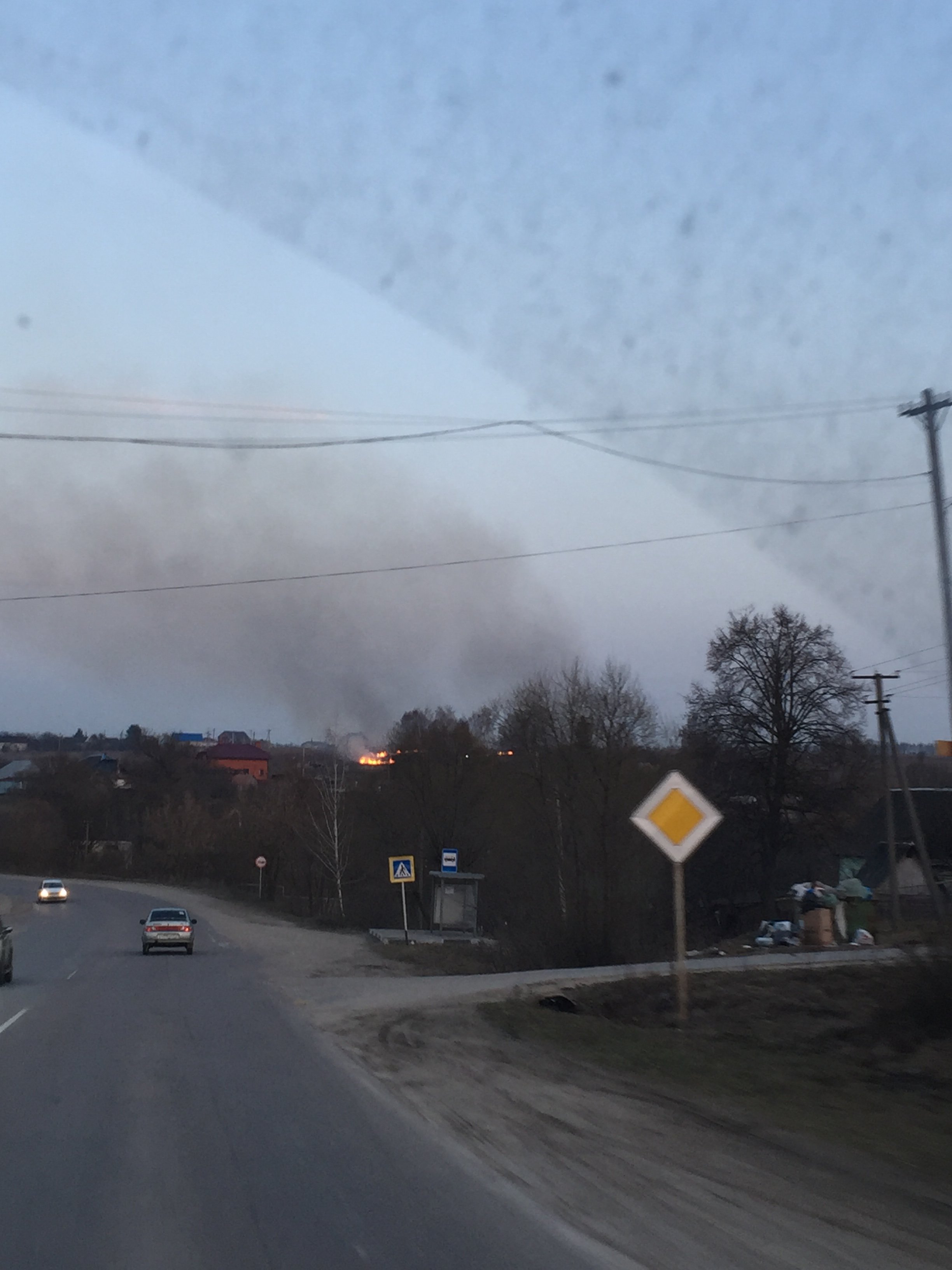 Очевидцы сообщают о поджоге сухой травы в деревне Маслово на въезде в Тулу.