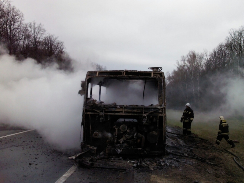 Ранним утром 22 апреля на пульт диспетчера поступило сообщение о возгорании автобуса «Леафт», который стоял на обочине трассы «Тула-Богучарово».