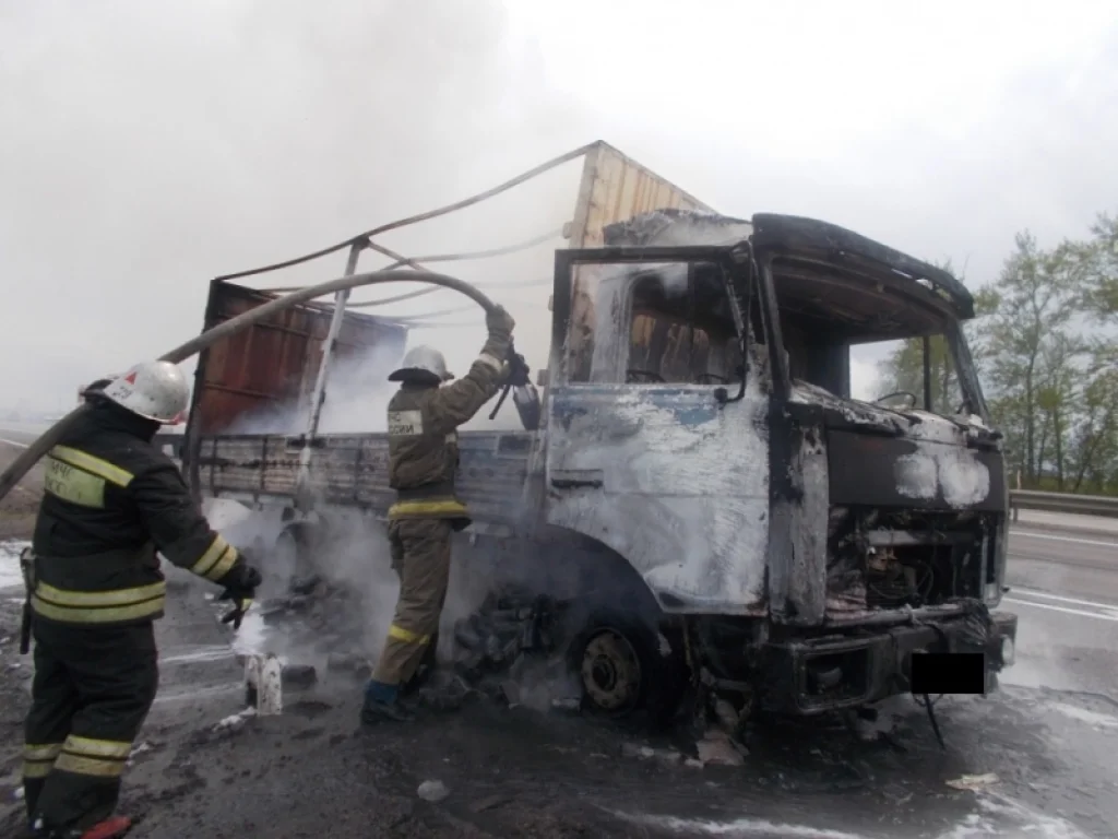 Накануне в четверг на 324-м км трассы М-4 "Дон" сгорел припаркованный грузовик "МАЗ". Сообщение о возгорании поступило на пульт диспетчера «Единой службы спасения-112» в 14:40. На место происшествия незамедлительно выехали два пожарных расчета.