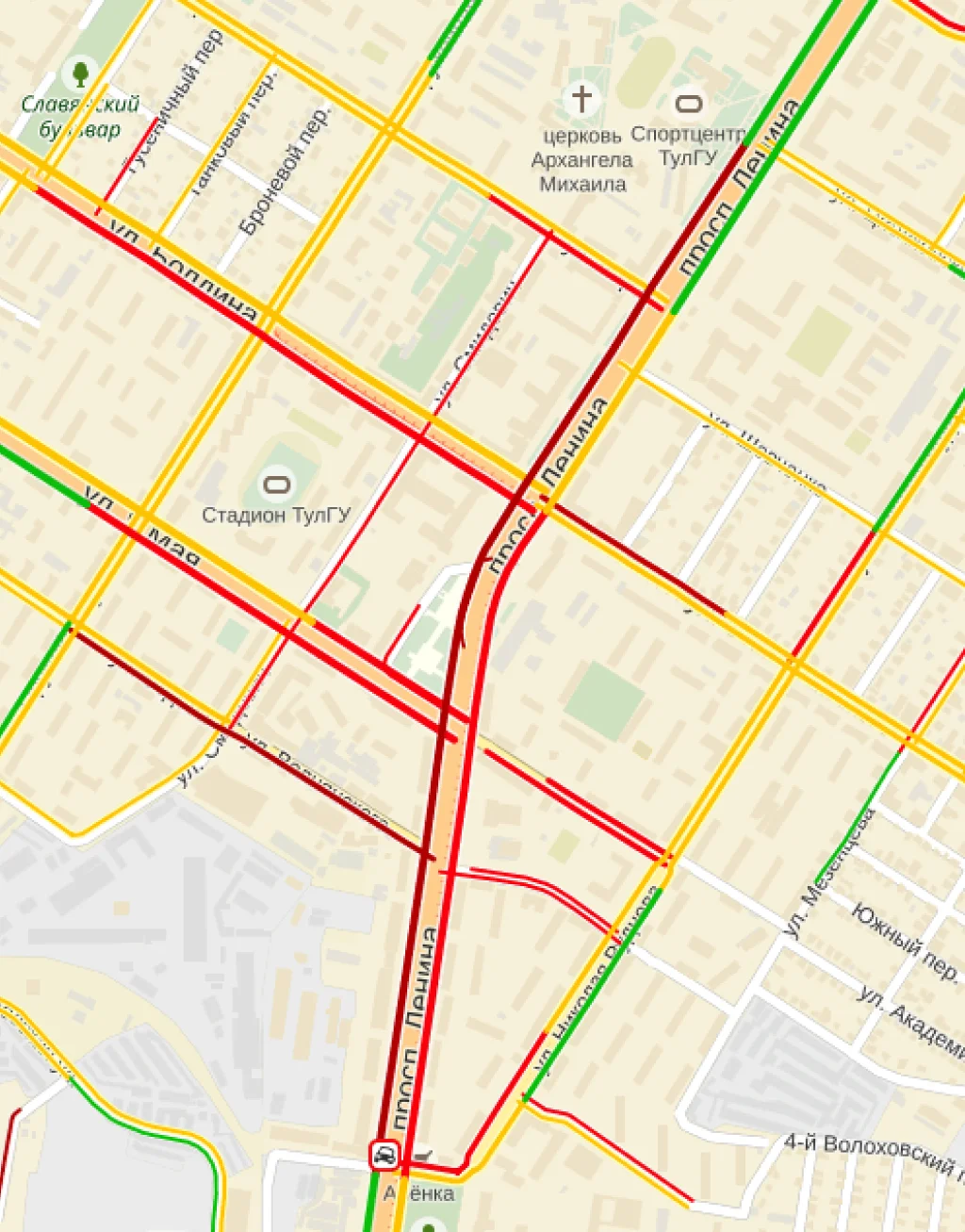 Проспект Ленина стоит в пробке, которая начинается от остановки «Политех» и тянется до пересечения с «Рязанкой». Выбирайте пути объезда!