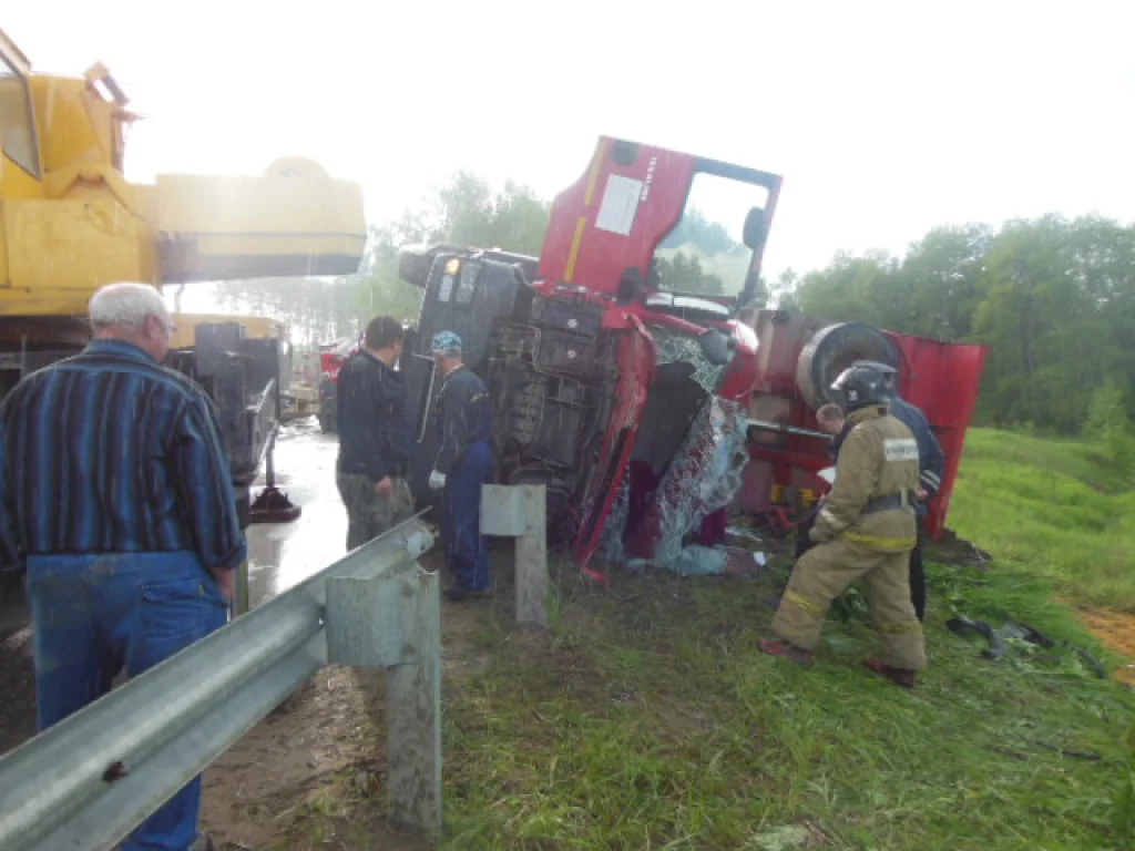 В Алексине в результате опрокидывания грузового "Мана" в кювет пострадал человек