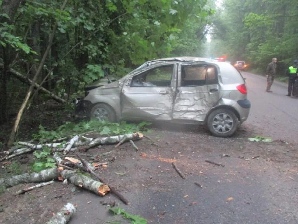 50-летний водитель автомобиля "Hyundai Getz" сбил перебегающего дорогу лося, после чего не справился с управлением и врезался в дерево.