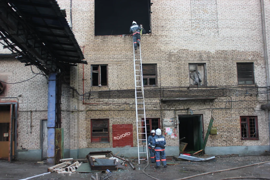 В 02:25 пожарные ликвидировали открытое горение, а в 04:45 была объявлена полная ликвидация последствий происшествия.. Есть пострадавший. В результате взрыва произошло частичное обрушение здания цеха на площади примерно в 500 кв. м.
