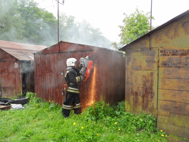 В минувшую субботу, 28 мая, загорелся гаражный блок, расположенный в п. Хомяково на ул. Хомяковская. Сообщение о возгорании поступило на пульт диспетчера в 8:14.