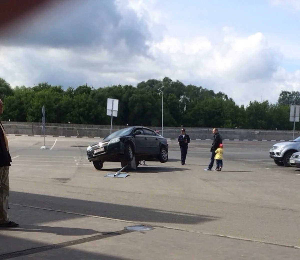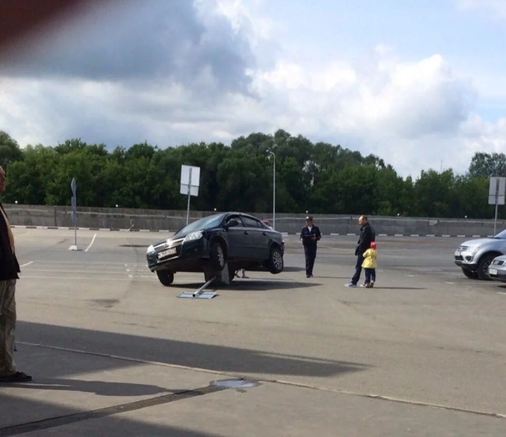 Как туляк на парковке торгового центра снес дорожный знак