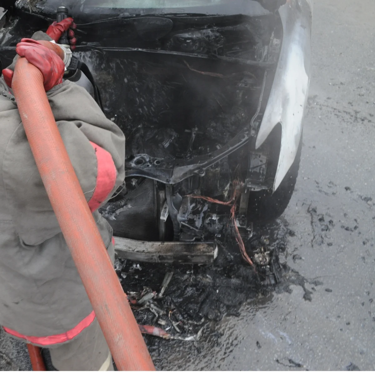 В результате происшествия у автомобиля выгорел моторный отсек, оплавилось лакокрасочное покрытие на передних крыльях автомобиля. Причины возгорания устанавливаются.