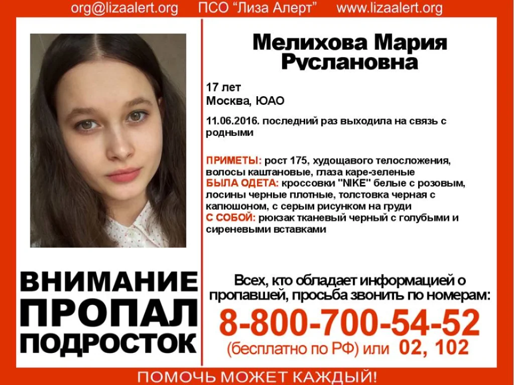 17-летняя москвичка ушла из дома в субботу, 11 июня 2016 года.