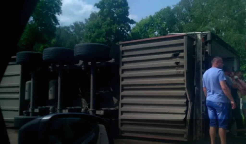 На автодороге Тула-Новомосковск, в районе населенного пункта Большая Еловая опрокинулась фура.
