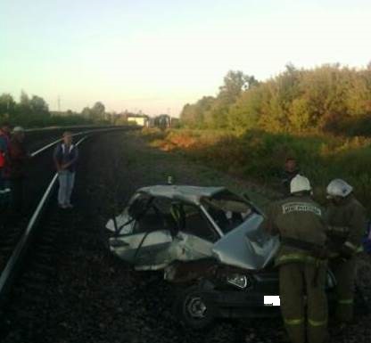 Легковой автомобиль "ВАЗ-2109" выехал на переезд, где столкнулся с проходящим поездом "Москва-Адлер".