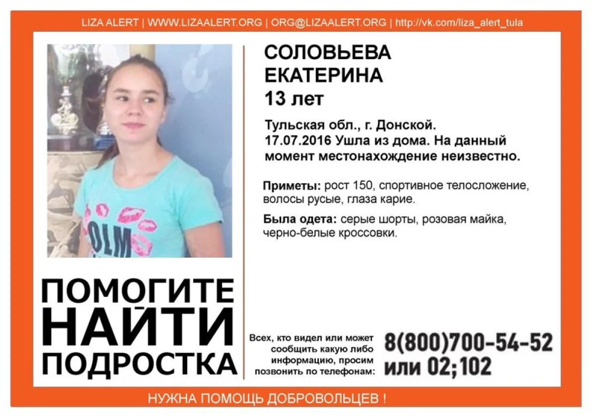 В Донском пропала Соловьева Екатерина. Девочке 13 лет.
