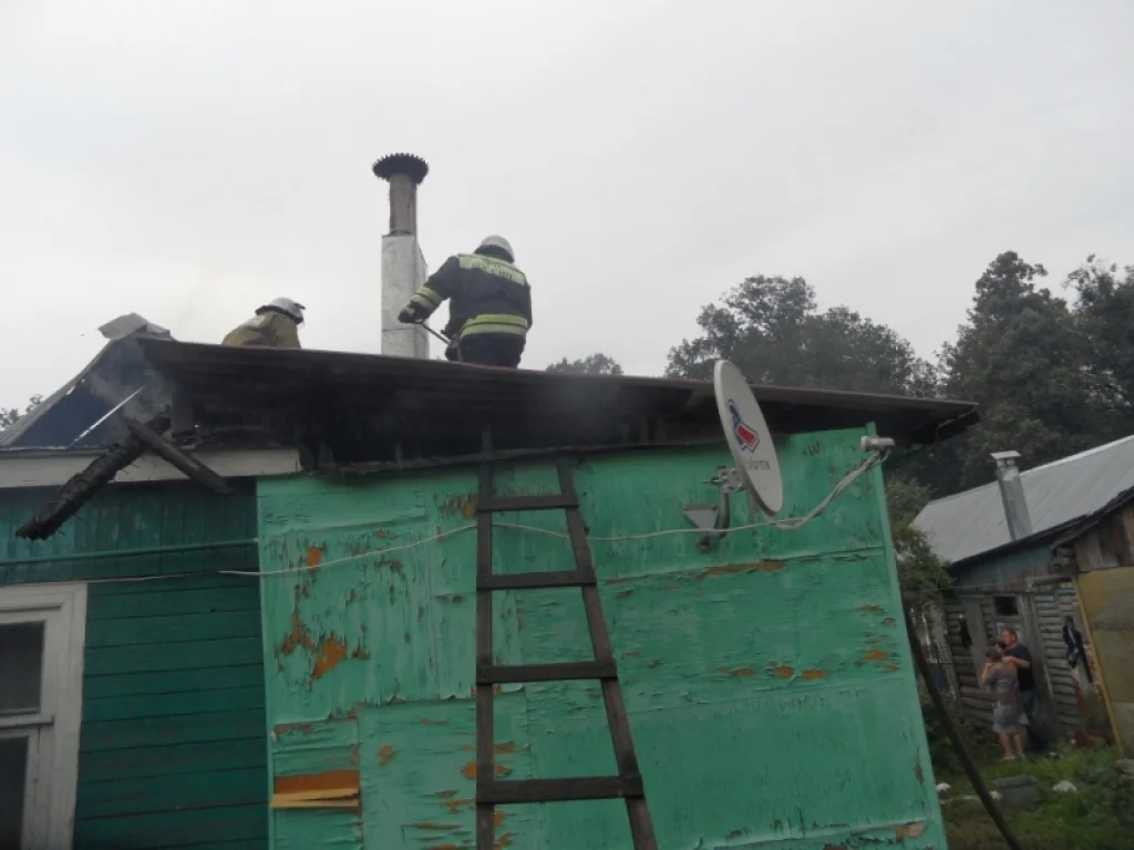 Пострадавших нет. В результате происшествия сгорела и обрушилась кровля дома. Для ликвидации последствий происшествия от МЧС России привлекалось 14 человек и 5 единицы техники.