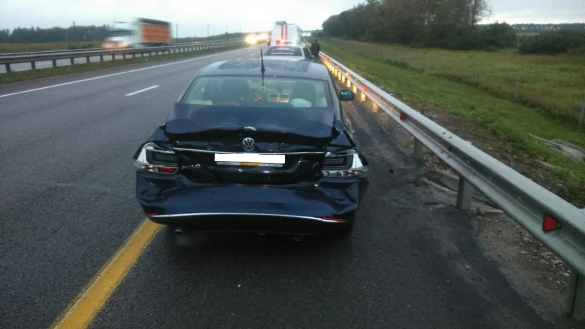 Водитель грузовика «МАЗ 543205» ехал в сторону Москвы, но не справился с управлением и столкнулся с движущимся впереди попутным автомобилем «Volkswagen Polo».