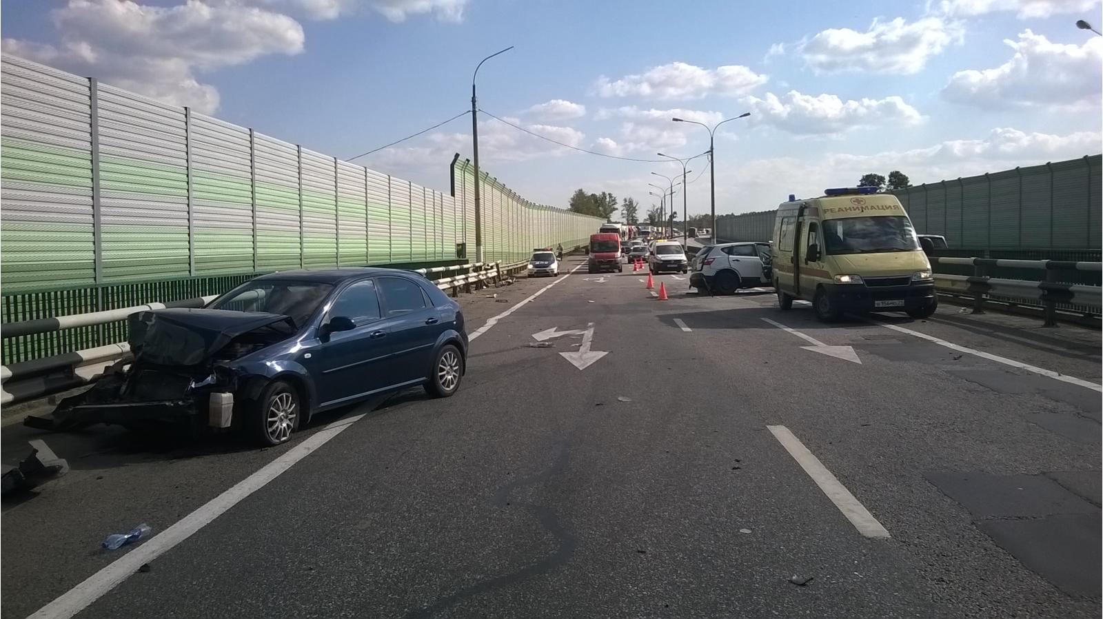 Автоледи на «Chevrolet Lacetti» ехала в сторону Москвы и столкнулась с попутным автомобилем «Nissan Qashqai» под управлением 50-летнего мужчины. В результате столкновения «Nissan» занесло, и он въехал в ограждение.