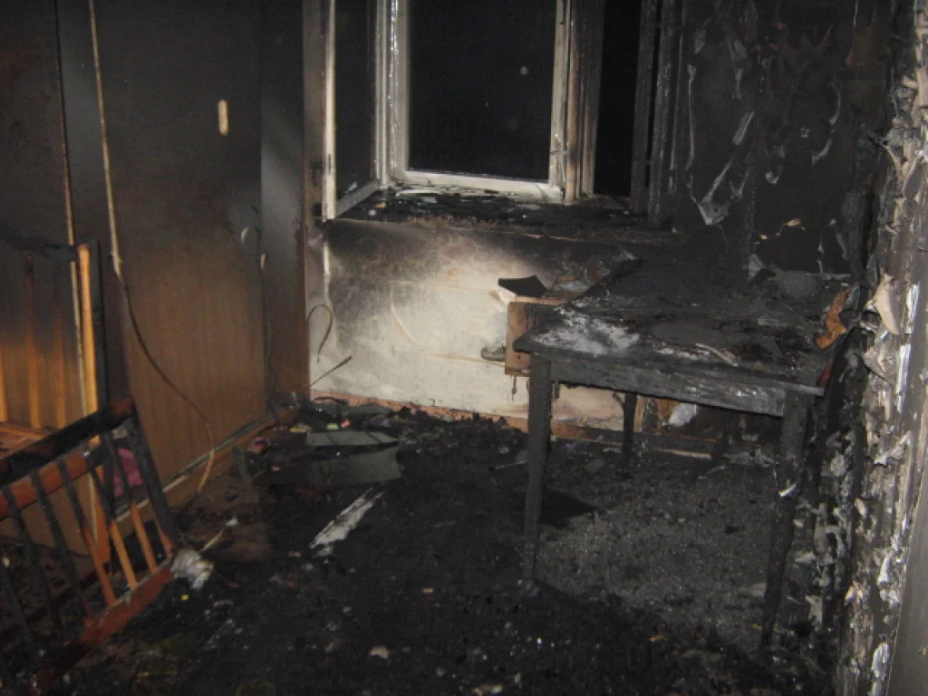 В комнате, где произошло возгорание, частично выгорела мебель и закоптились стены.
