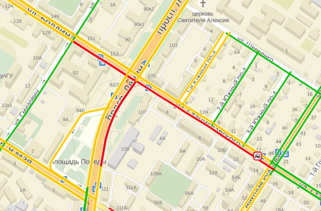 На пересечении улиц Станиславского и Руднева столкнулись автобус 206 маршрута и газель. В результате аварии пробка растянулась до проспекта Ленина. На самом проспекте транспорт стоит до площади Победы. Также небольшой затор на ул. Болдина, от пр. Ленина до ул. Смидович.