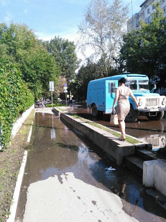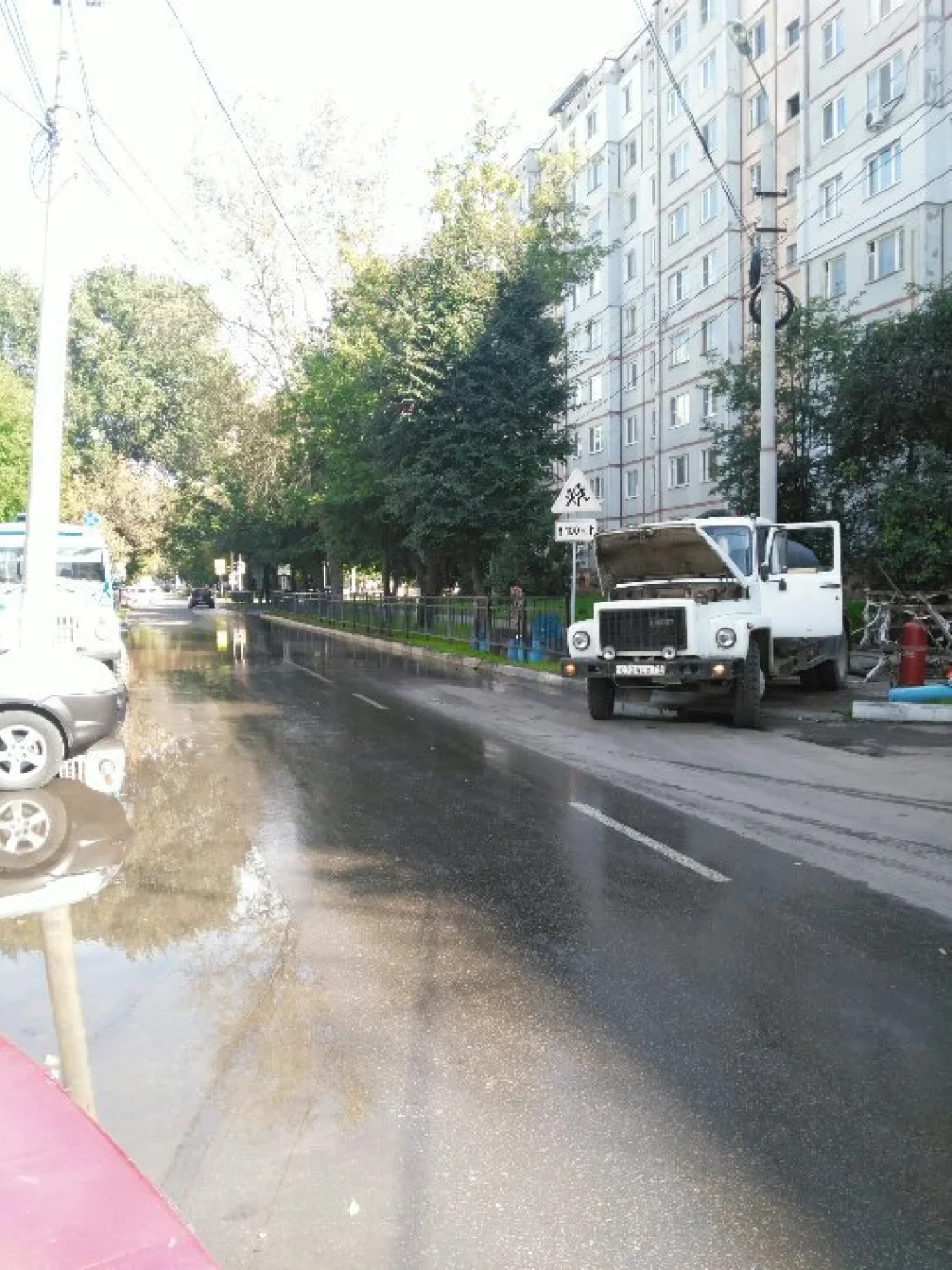 образовалось «термальное озеро» с горчей водой. Затопило проезжую часть и тротуар. Будьте осторожны!