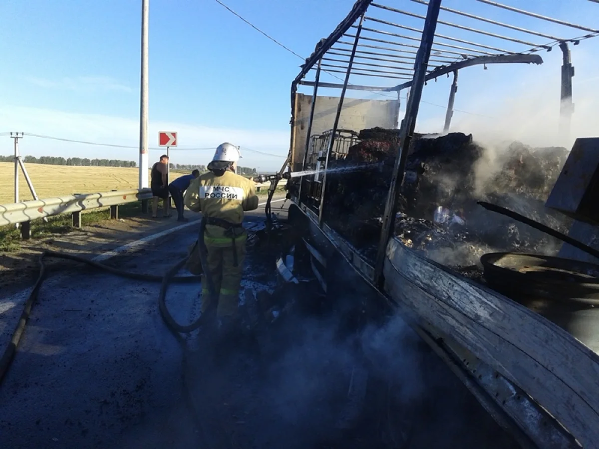 Около 7 часов утра 27 августа на 260 км автодороги М-4 «Дон» загорелся грузовой автомобиль.