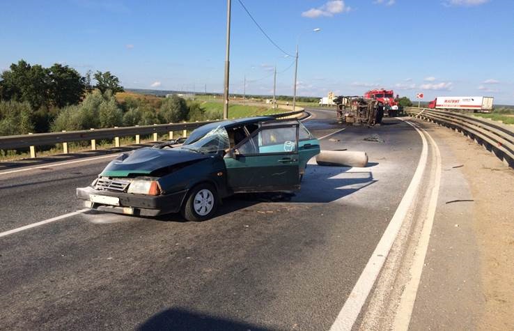 Сегодня, 2 сентября, в Тульской области произошло серьезное ДТП. На 82 км автодороги «Тула-Калуга» столкнулись «ВАЗ-2109» и грузовая «Газель».