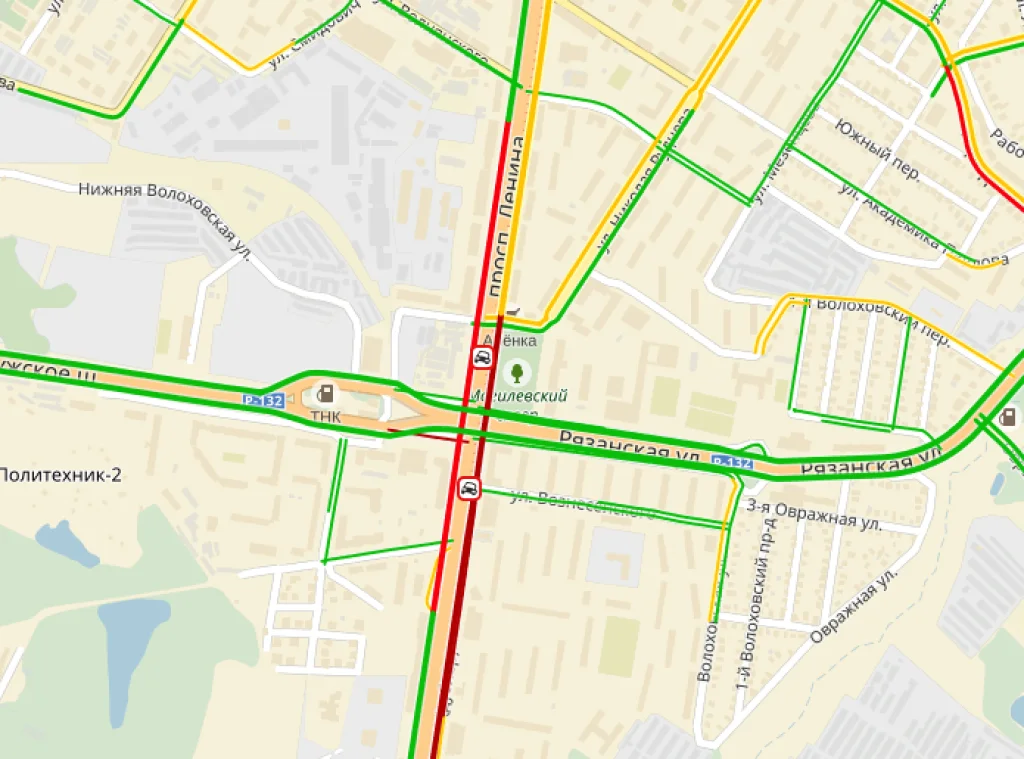 с ул. Вознесенского. Из за аварий образовался плотный затор в обе стороны, в том числе и на трамвайных путях.