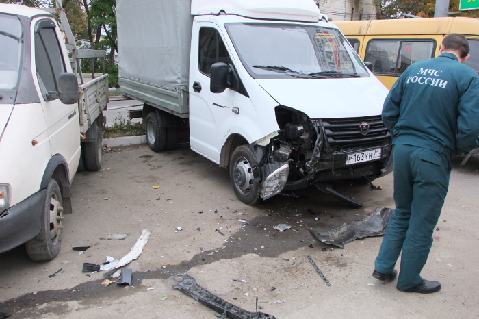 Около двух часов дня на автостоянке, расположенной на пересечении ул. Станиславского и Городского переулка, напротив магазина автозапчастей, произошло ДТП с участием сразу 5-и автомобилей.