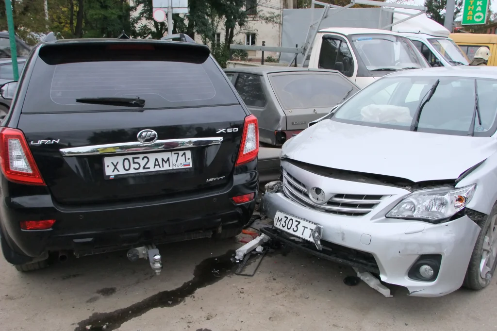 На автостоянке в Туле водитель «Тойоты» протаранил 4 припаркованных машины. ФОТО