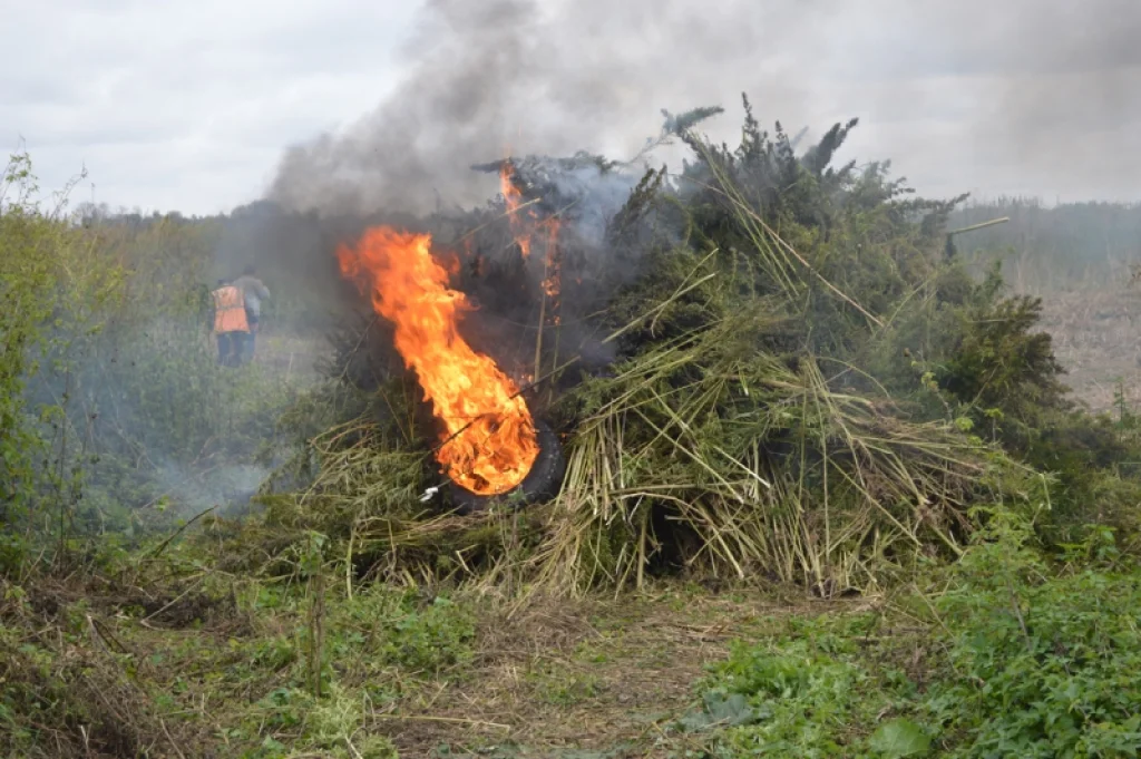 В одном из районов Тульской области было сожжено целое поле наркосодержащих растений - свыше 10 тысяч кустов.
