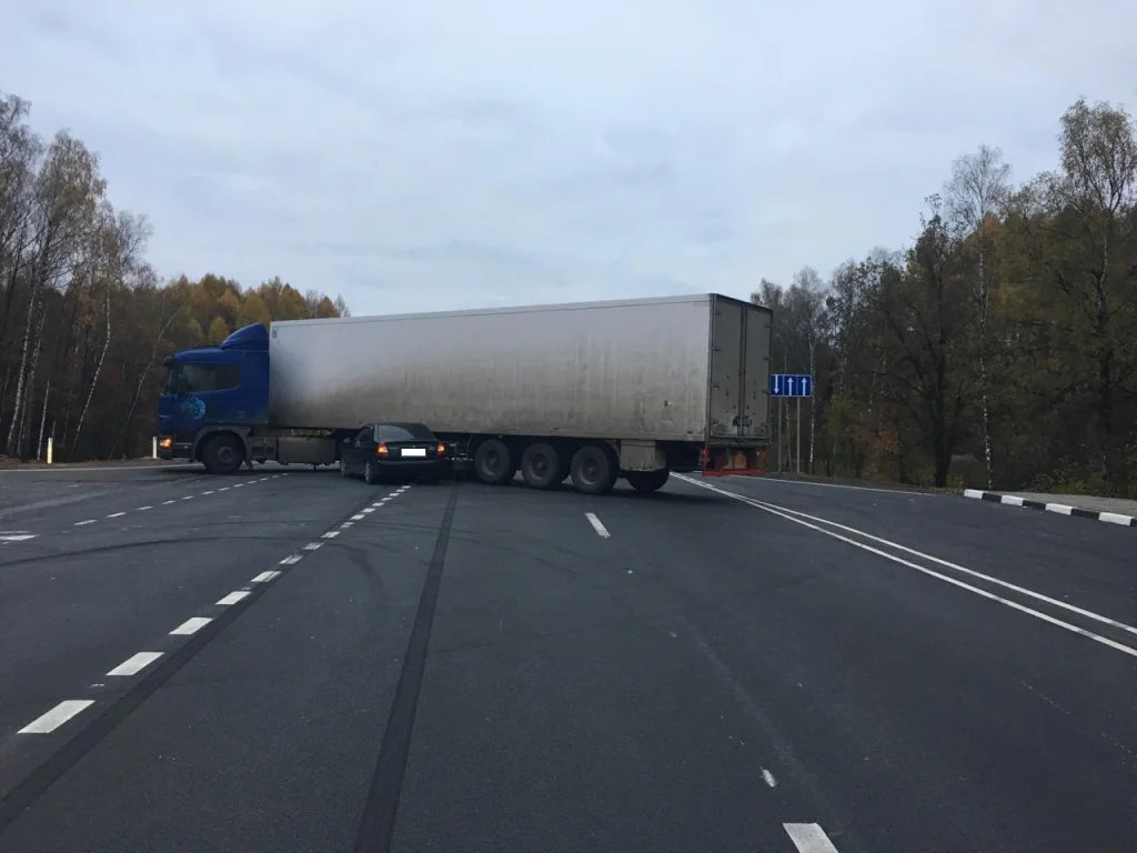 На тульской трассе при развороте фура «Скания» подрезала «Хендай»