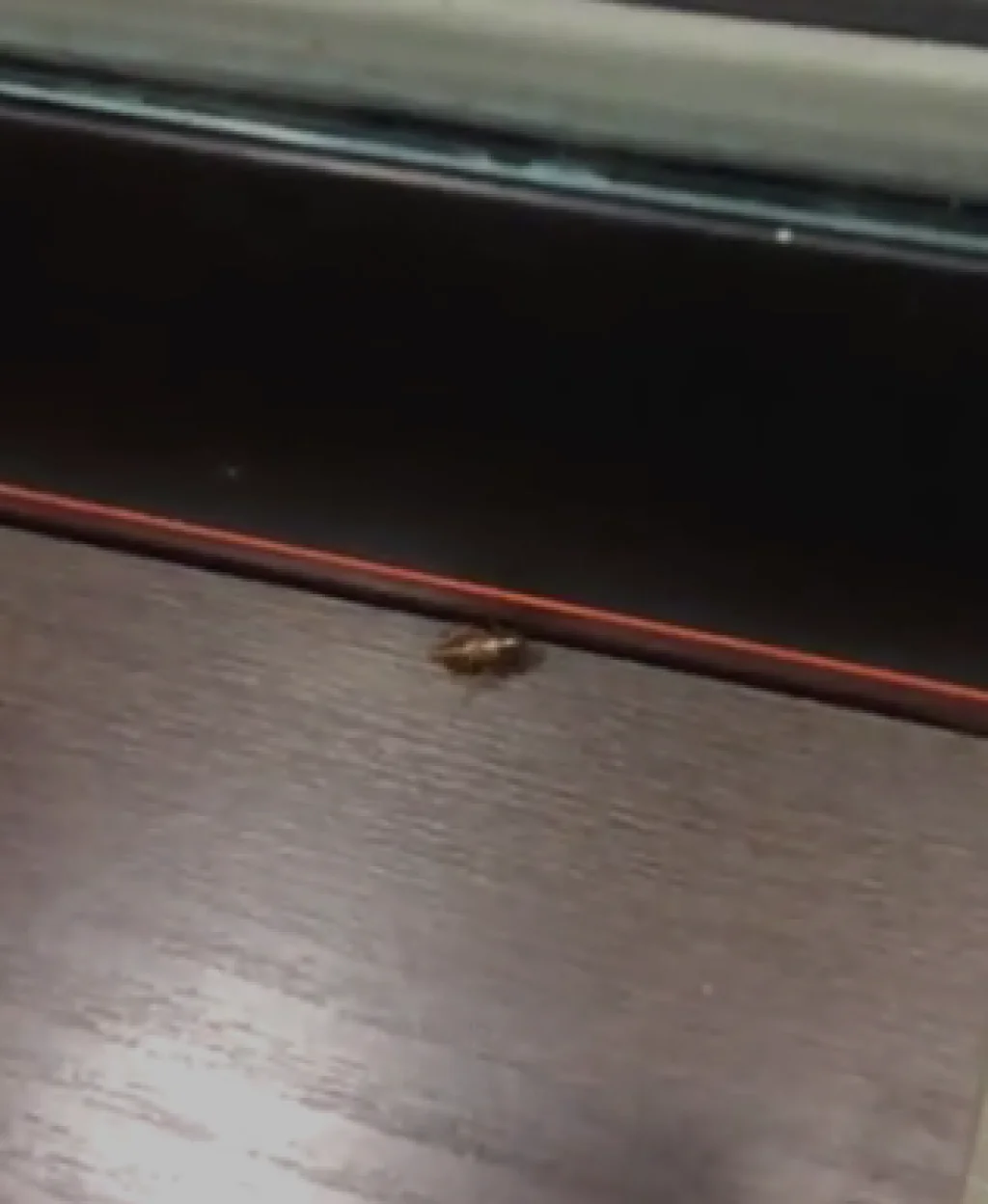 В кадре отчётливо видно, как по столу, никого не стесняясь, разгуливает огромный таракан.