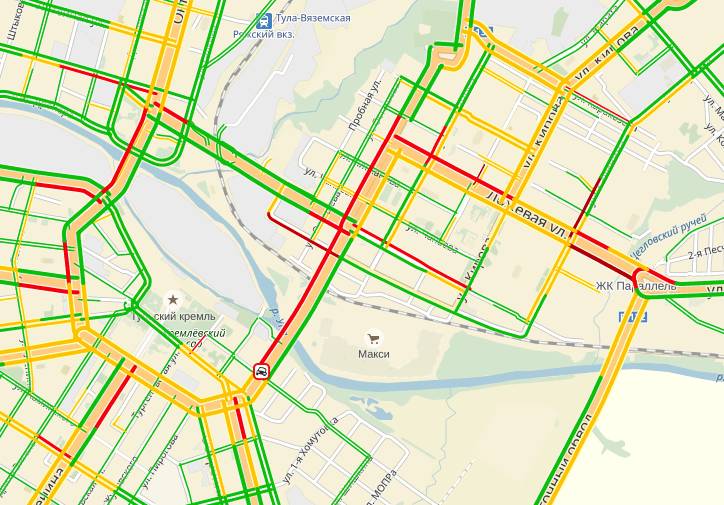 Уже по традиции с утра пораньше «Пролетарка» снова стоит в пробке из-за ДТП. Авария произошла все на том же злополучном месте на ул. Советской, напротив дома №73. Ул. Пролетарская стоит вместе с мостом до ул. Ложевой.
