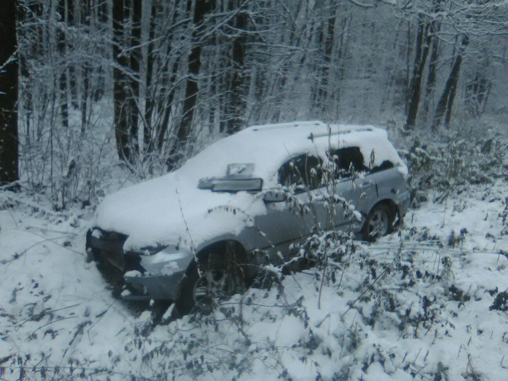 Недалеко от АО «КБП» обнаружена брошенная машина. Автомобиль, занесённый снегом, стоит в лесополосе,