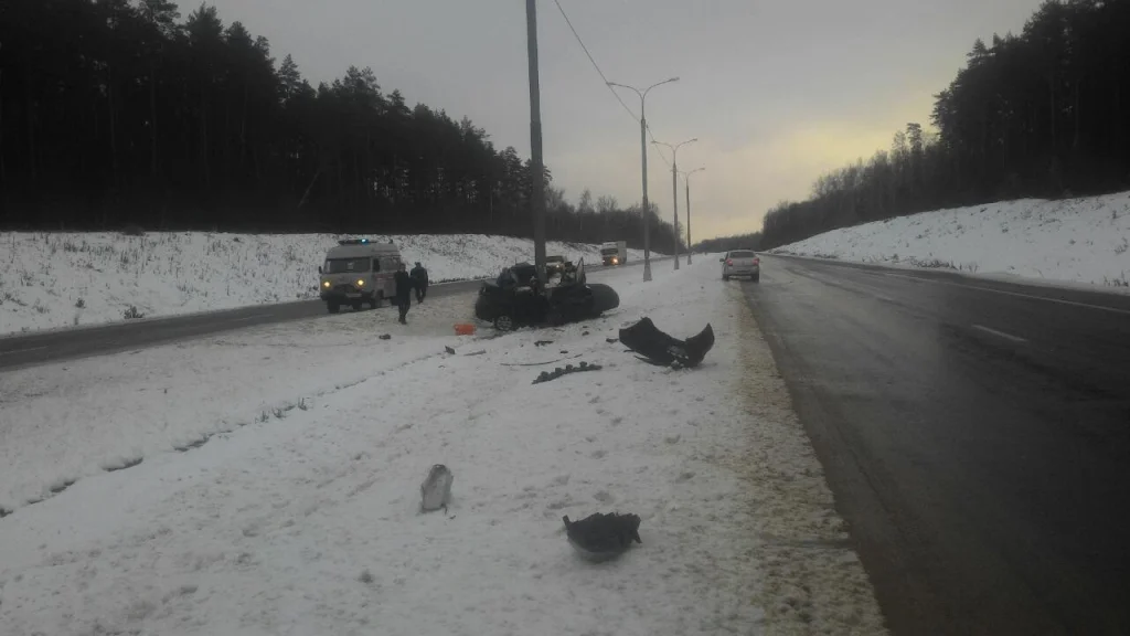 Женщина и мужчина насмерть разбились в «Ниссане», врезавшись в столб