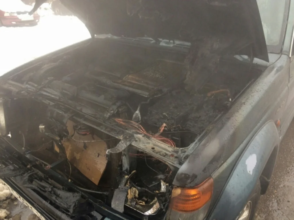 Прибывшие на место происшествия пожарные успели спасти иномарку, но машина все-таки лишилась мотора и декоративной решётки радиатора.