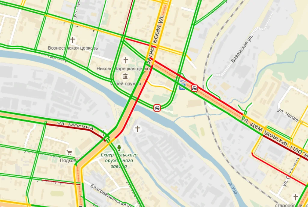 на Зареченском мосту, до ул. Советской, и на демидовск5ой плотине, от ул. Октябрьской до ул. Пролетарской.