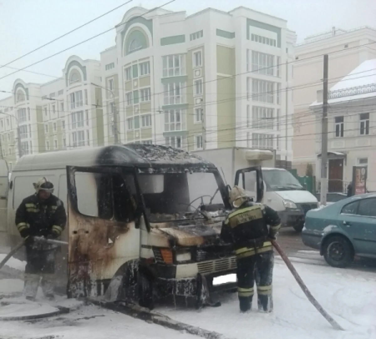 В Туле на ул. Советской среди бела дня загорелся микроавтобус. Случилось это около 13.00 неподалеку от остановки «Пирогова».
