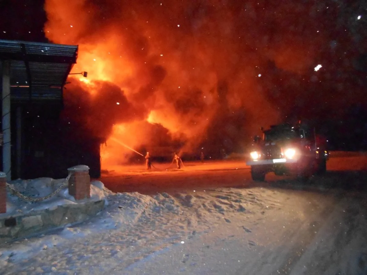 Мощный пожар произошёл в ночь на 13 декабря в придорожном кафе, расположенном на 38-м км трассы М-4 Богородицкого района.