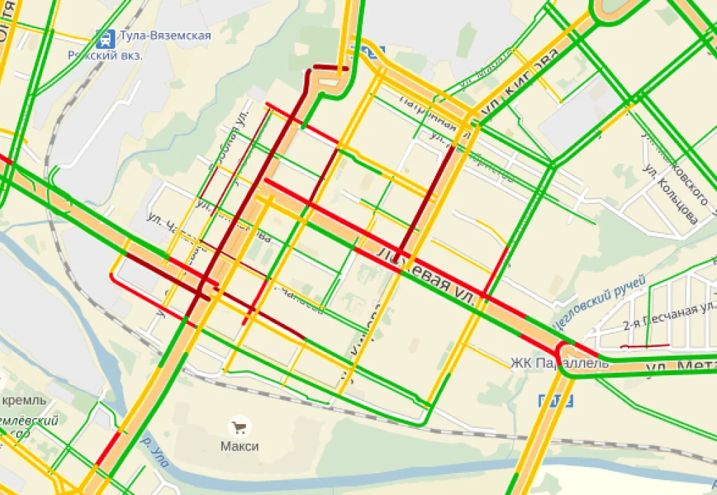 Пролетарский округ тулы снова застрял в пробке. Стоит ул. Ложевая в сторону центра, ул. Пролетарская, Демидовская плотина.