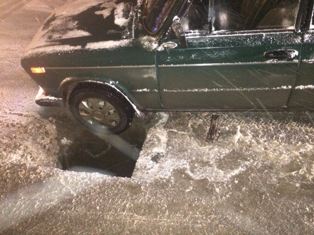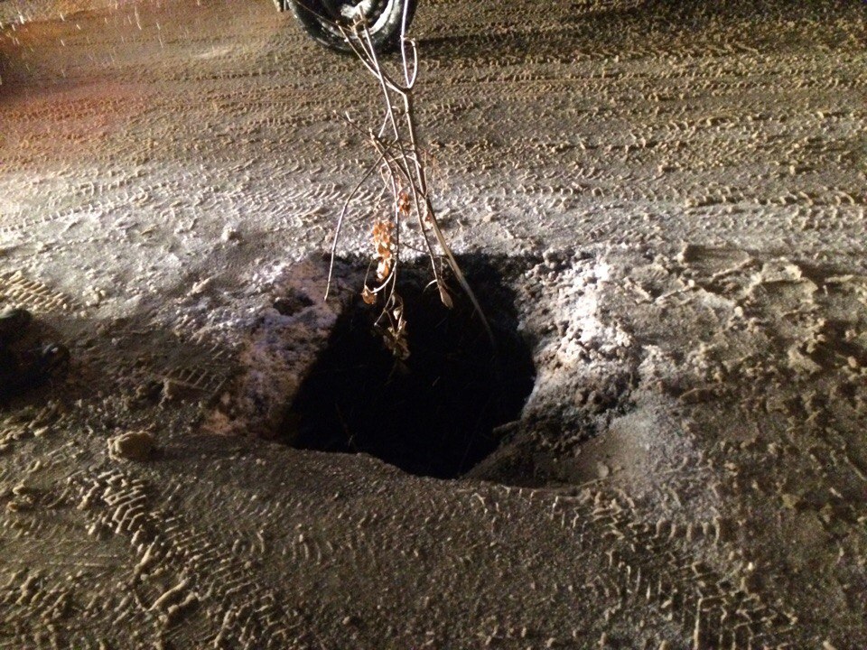 С утра многие водители уже побывали в нем колесами. Будьте осторожны!