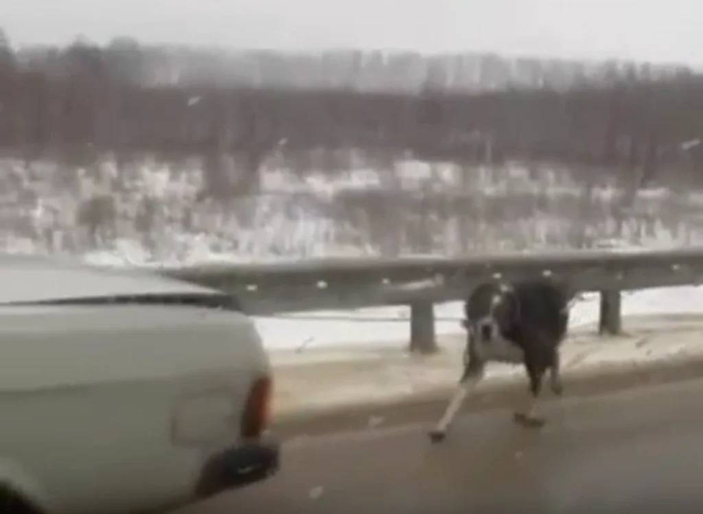 Инцидент произошёл в начале декабря прошлого года. Хозяин решил транспортировать пса странным способом, привязав его за шею к бамперу автомобиля. Прохожие засняли несчастное животное на видео и выложили ролик в соцсети с комментарием: «Бедный пёс стер лапы в кровь; когда сил бежать за машиной уже совсем не оставалось, он падал вниз животом на асфальт».