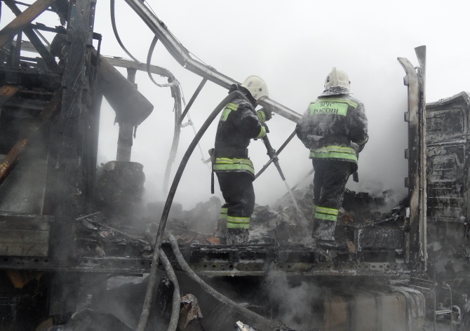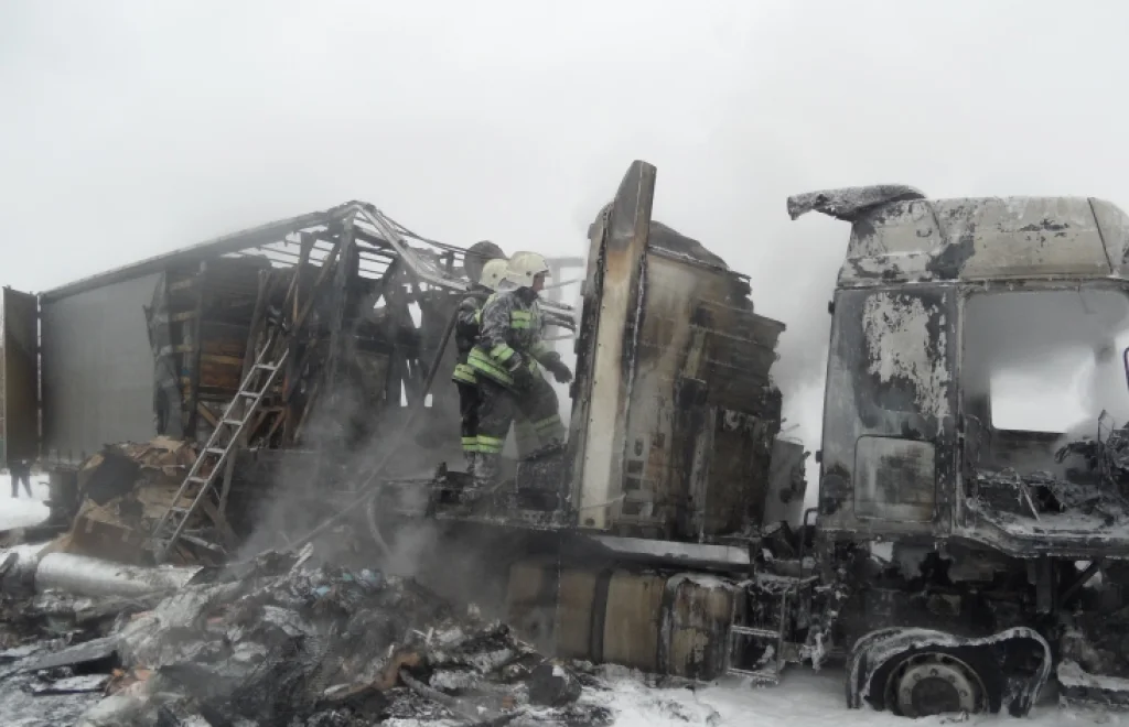 Пострадавших нет. В результате происшествия выгорела кабина и половина прицепа.