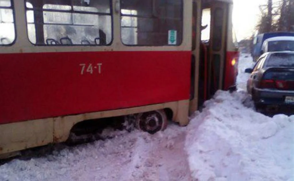 Как сообщают очевидцы, трамвай следовал по маршруту №7, но в итоге оказался на пешеходной дорожке.