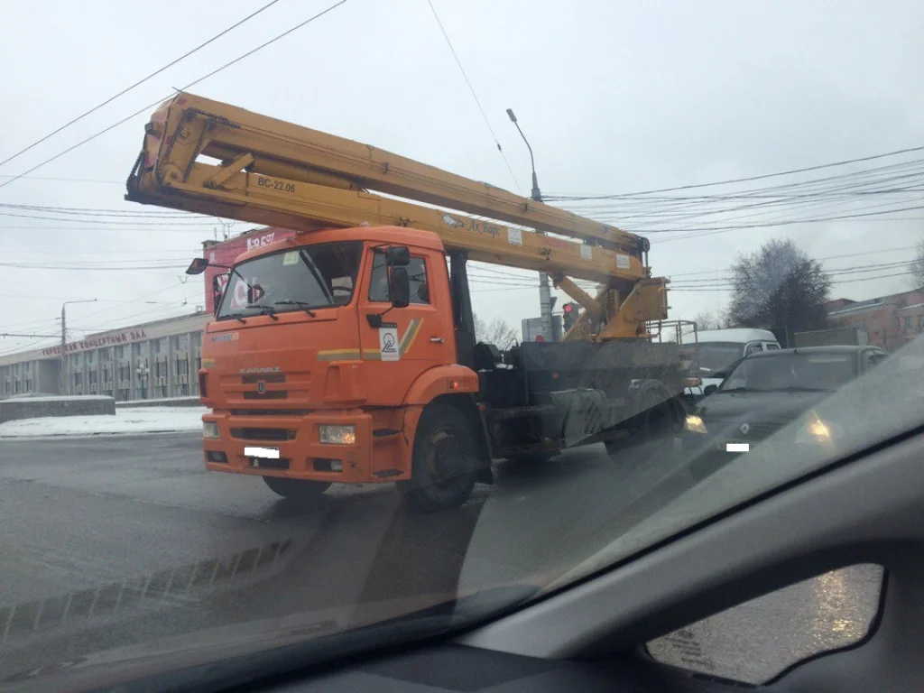 Авария произошла на пересечении ул. Мосина и ул. Советской. В автокран сзади въехала грузовая «Газель»,